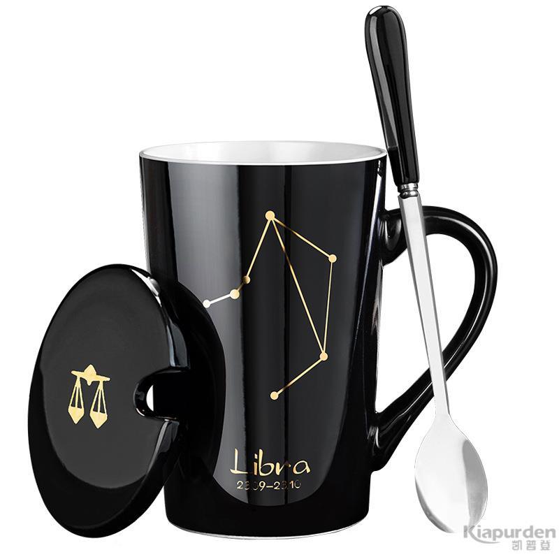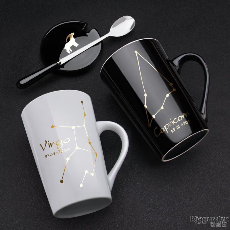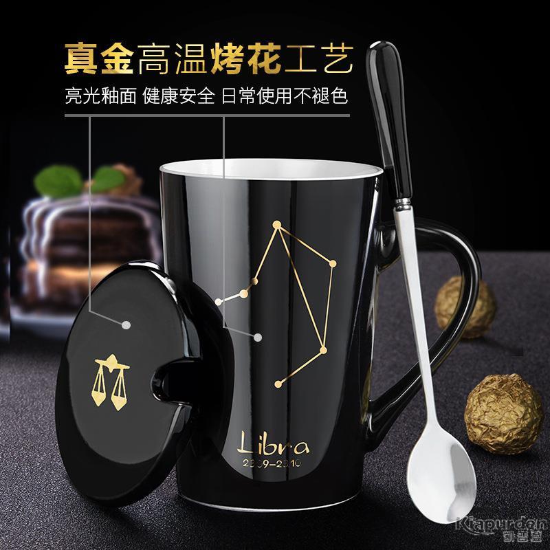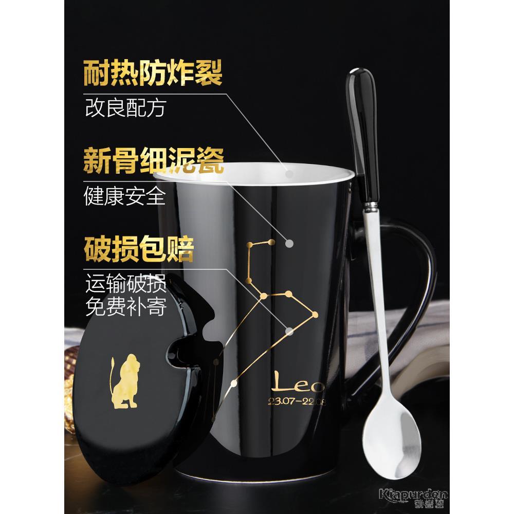 陶瓷马克杯十二星座咖啡杯子带盖勺情侣男生办公室家用大容量水杯