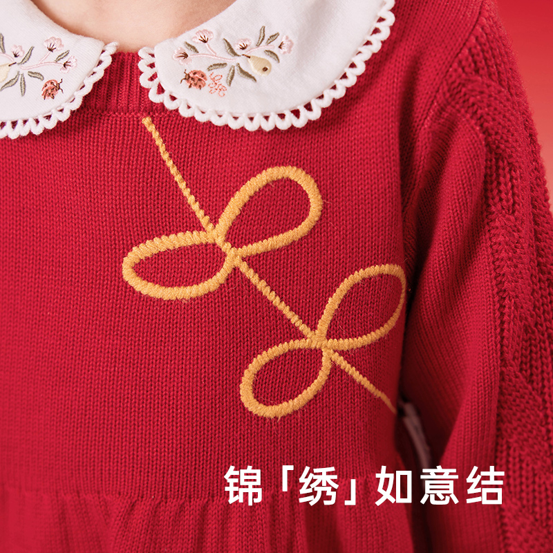 英氏女童连衣裙春秋新年衣服国风中式宝宝裙子红色新年拜年服