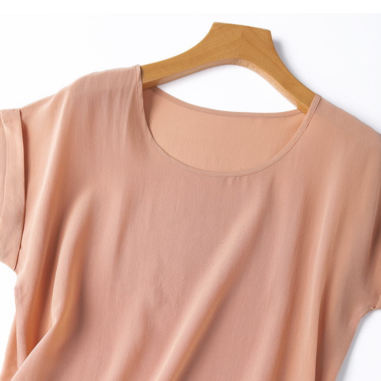 真丝双绉卷边袖宽松桑蚕丝T恤