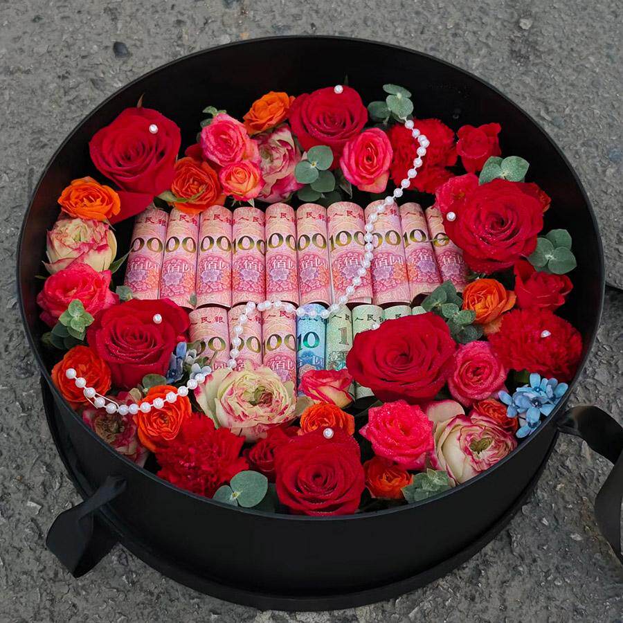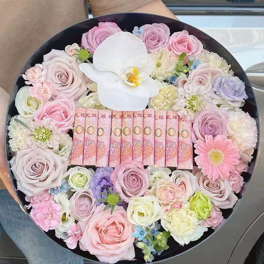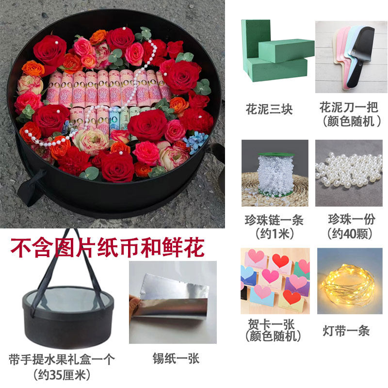 自己做手工有钱花礼盒的DIY材料包全套 大号圆形鲜花空盒七夕礼物