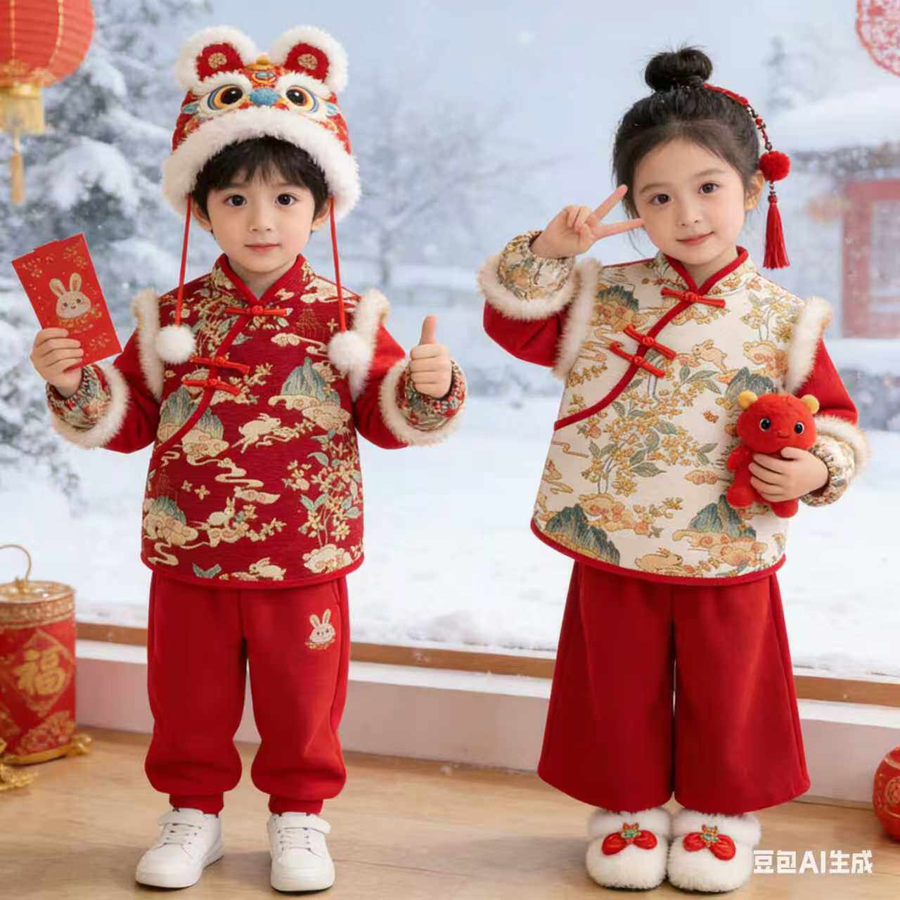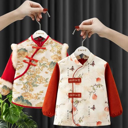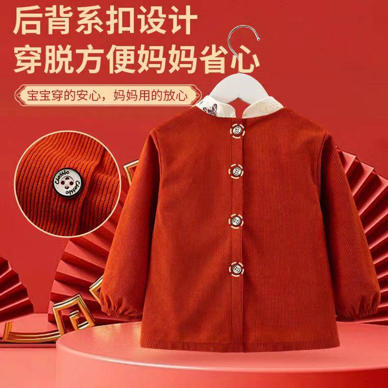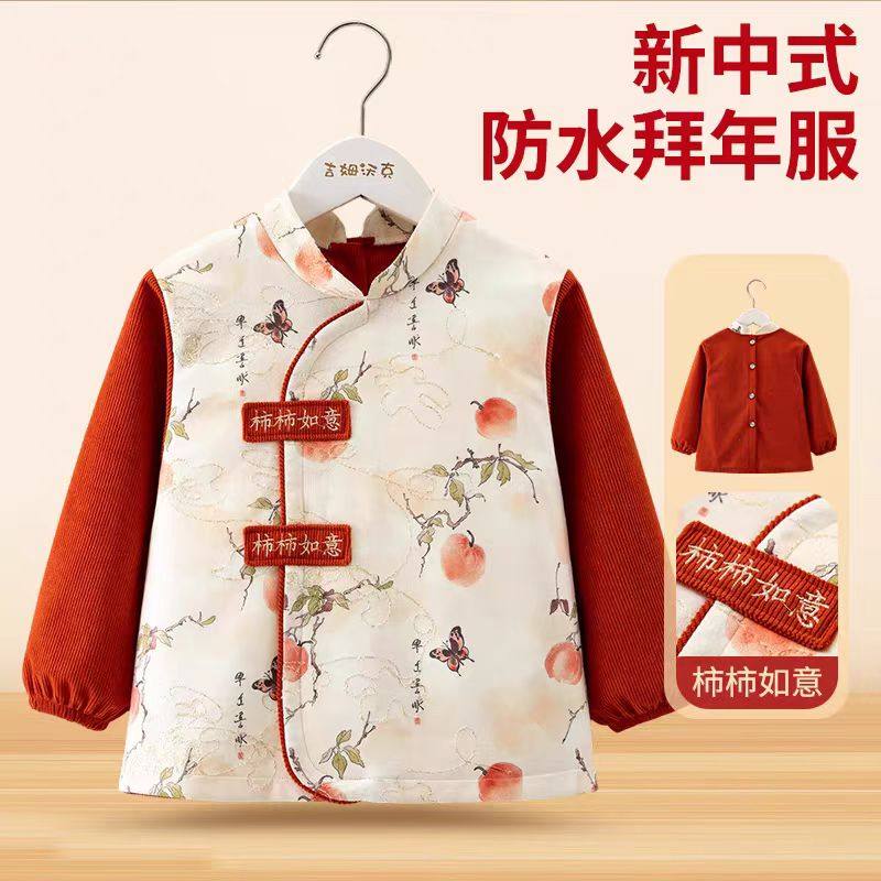 国风罩衣新年儿童拜年服唐装外穿洋气男女宝宝吃饭围兜婴儿反穿衣
