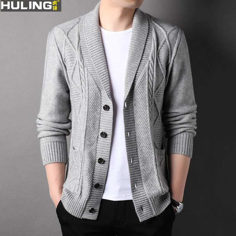 毛衣外套男士装宽松休闲中年父亲春秋季加厚麻花辫翻领针织开衫