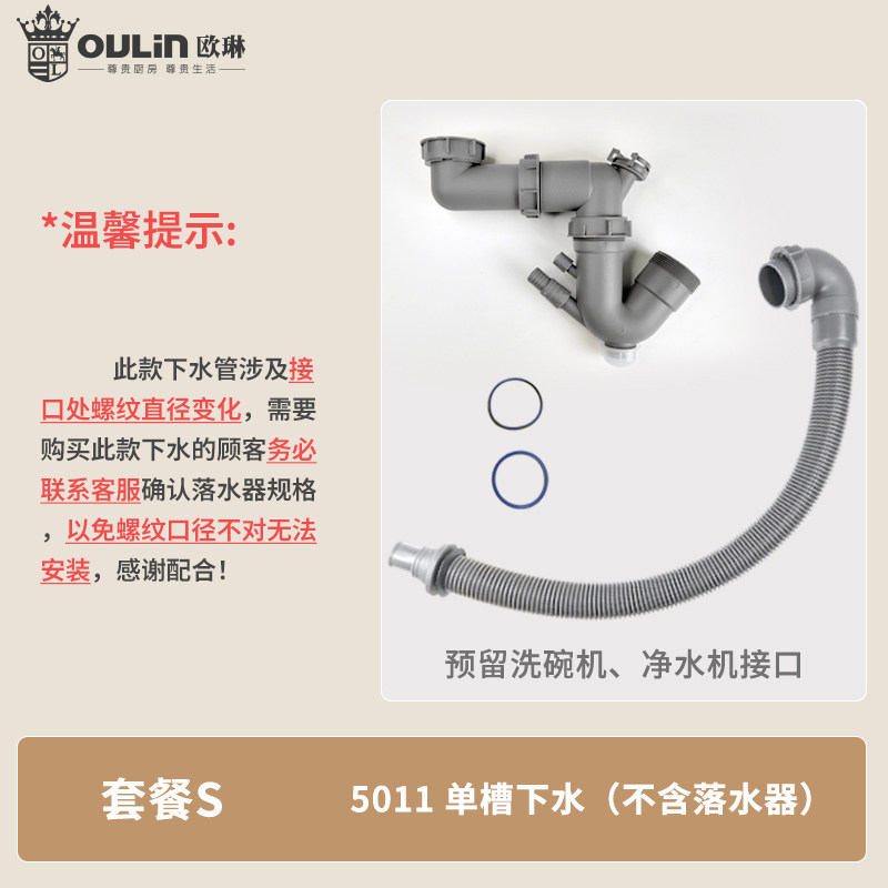 欧琳水槽PP下水管可接三通加粗50排污管落水器洗菜盆排水管配件