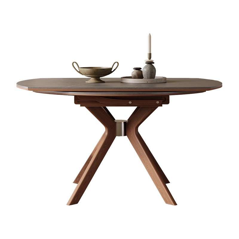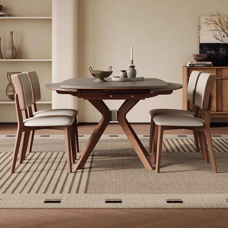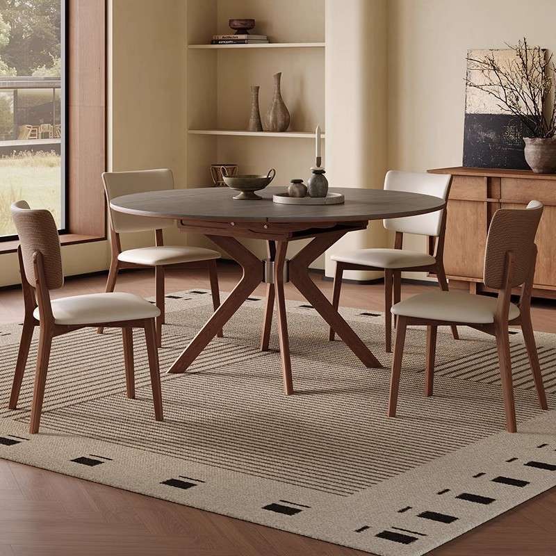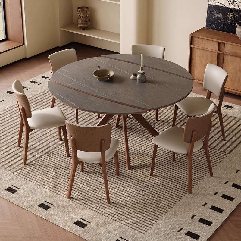 法式复古岩板圆餐桌椅组合小户型新款极简高端实木复古圆形餐桌