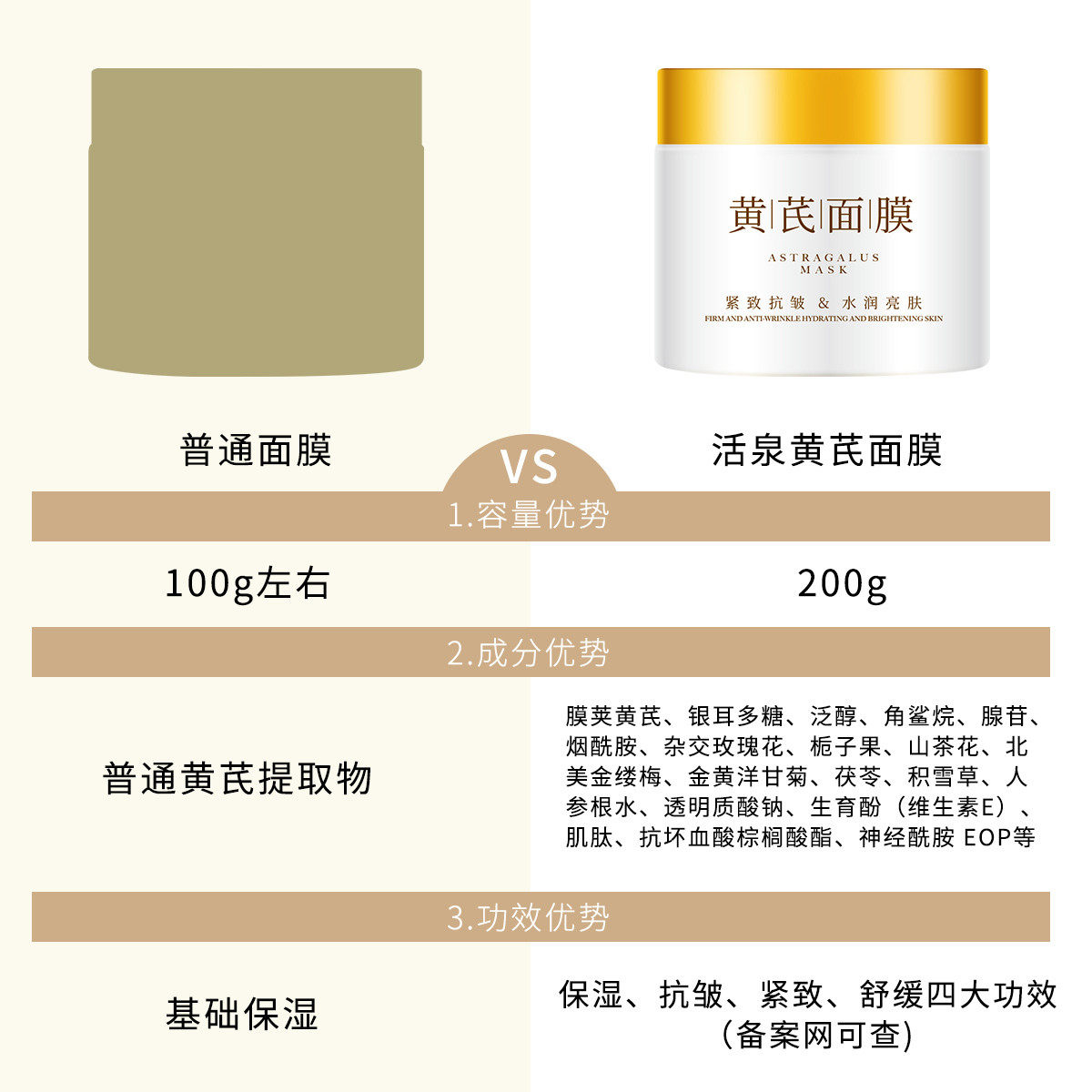 黄芪面膜霜涂抹睡眠免洗非去黄提亮暗沉祛斑美白补水保湿紧致抗皱