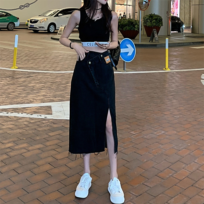 大码牛仔半身裙女夏季显瘦a字性感辣妹侧开叉中长款不规则包臀裙