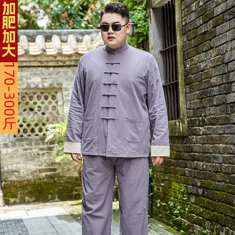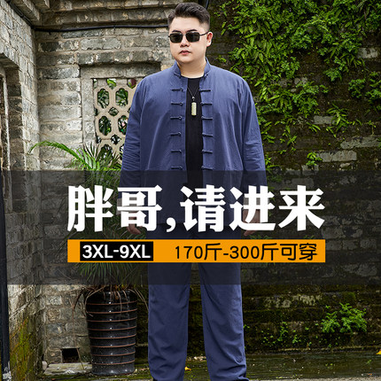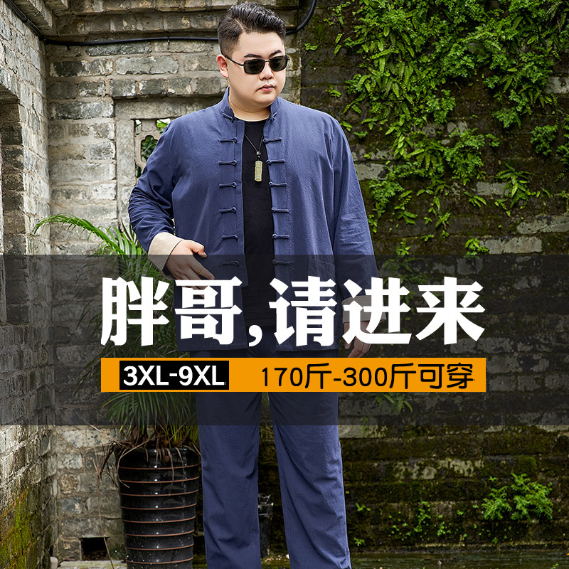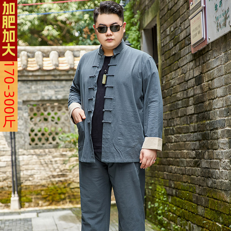 大码男装新中式唐装加肥加大套装春秋胖子立领上衣宽松中国风汉服