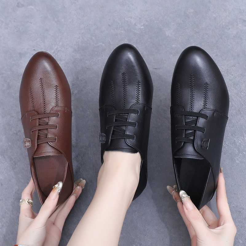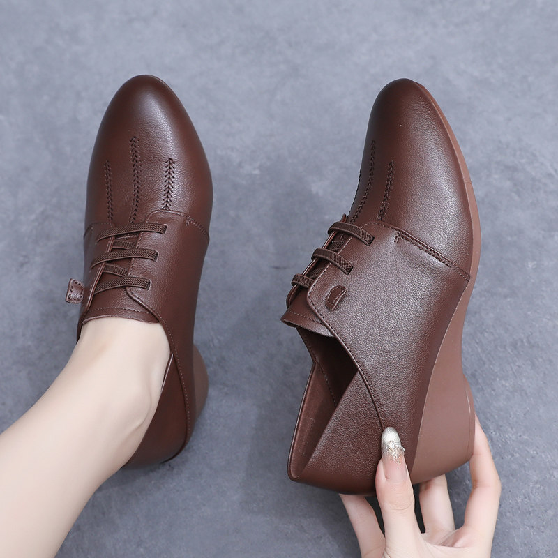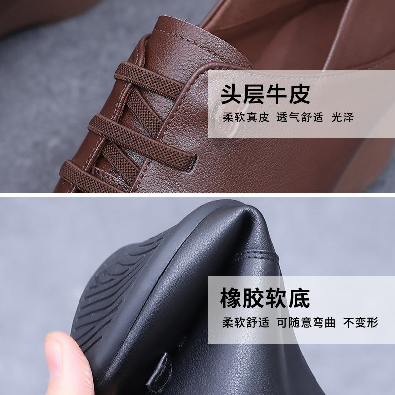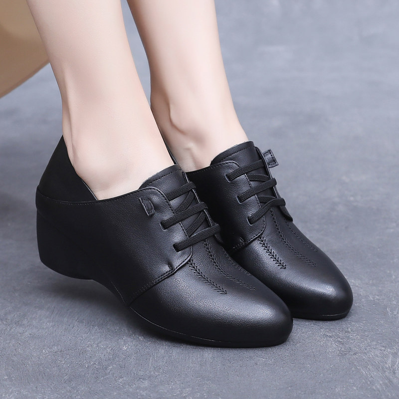 坡跟真皮中老年妈妈鞋舒适中跟新款单鞋女四季防滑大码皮鞋41-43