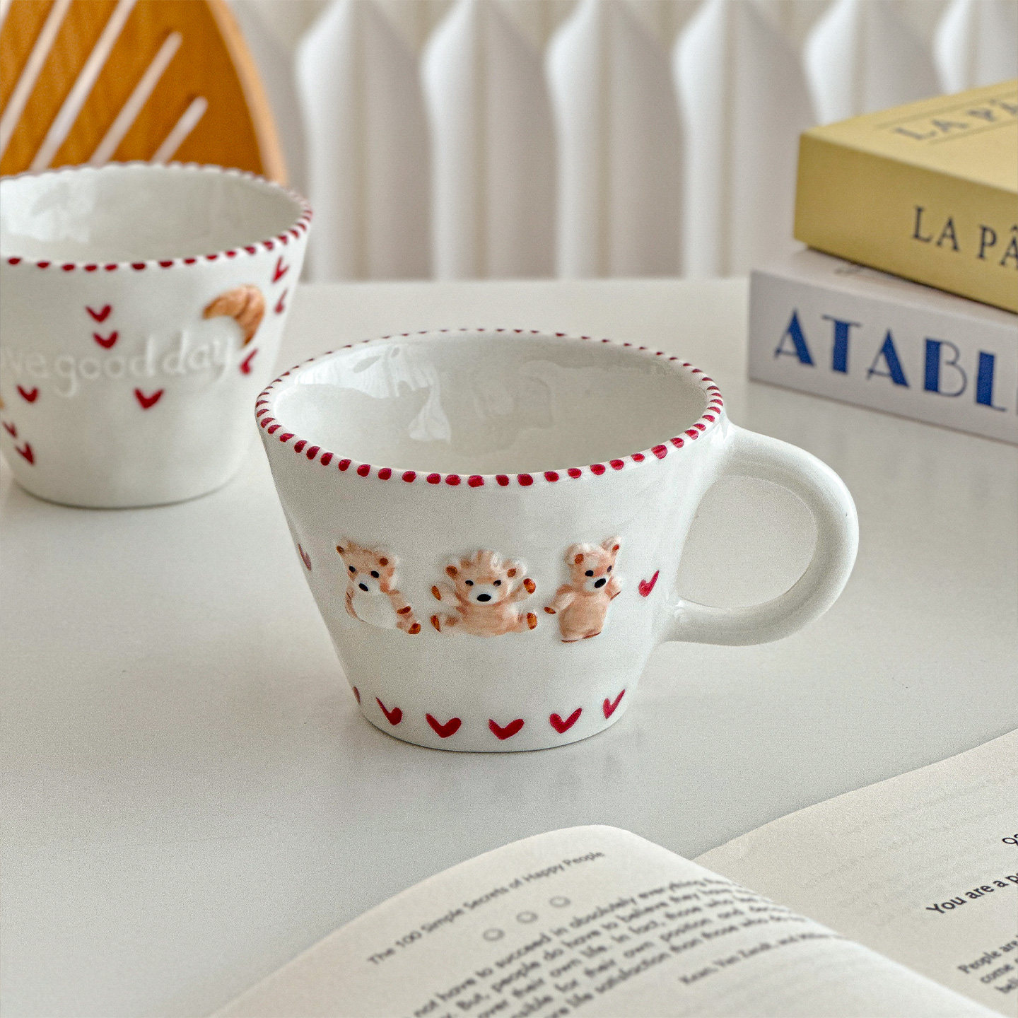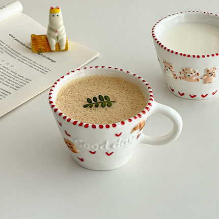 可爱创意手绘浮雕陶瓷水杯