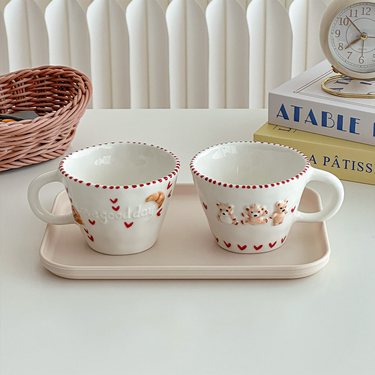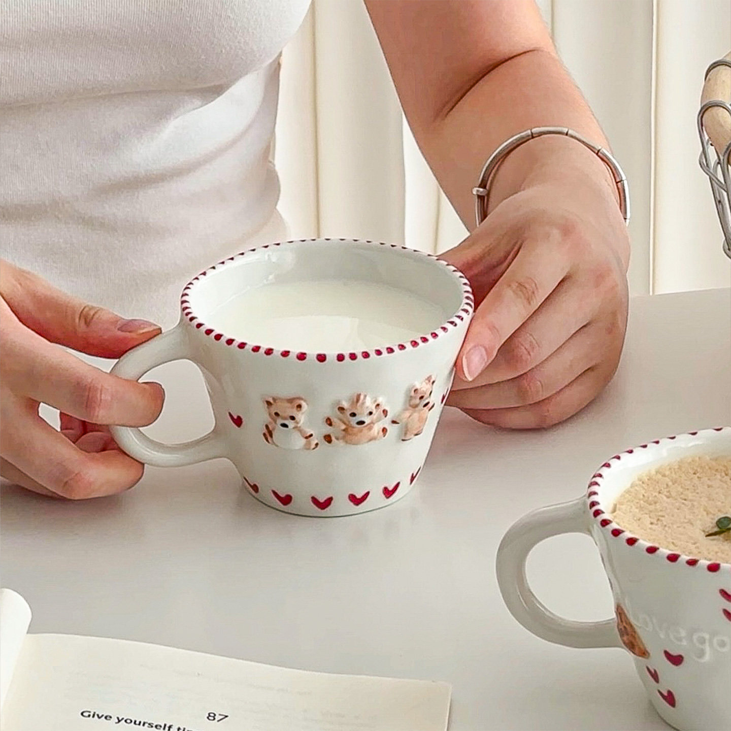 穆尼 可爱ins咖啡杯手绘小熊陶瓷杯马克杯情侣对杯家用水杯牛奶杯