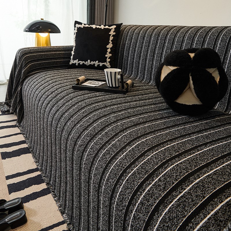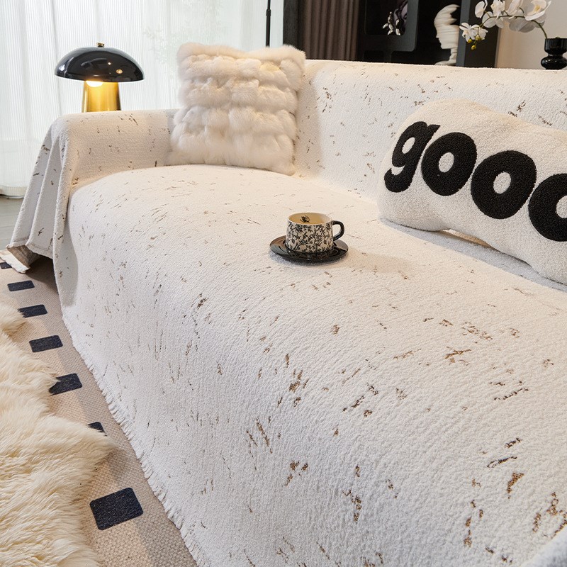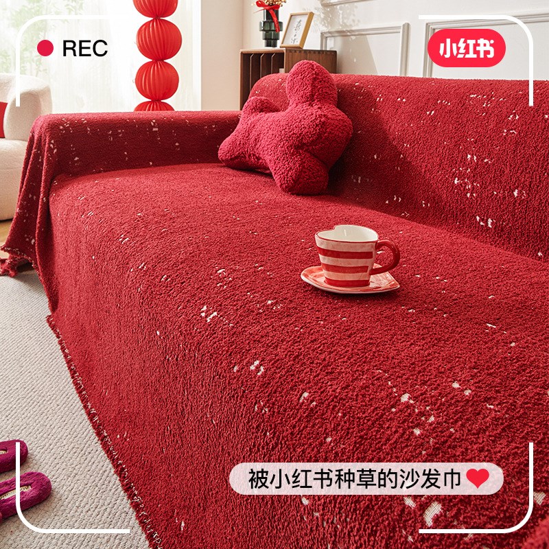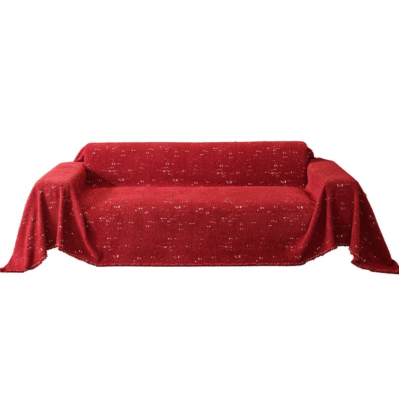 毛毛纱沙发巾红色沙发盖布一片式沙发套防滑耐脏沙发垫全包沙发罩