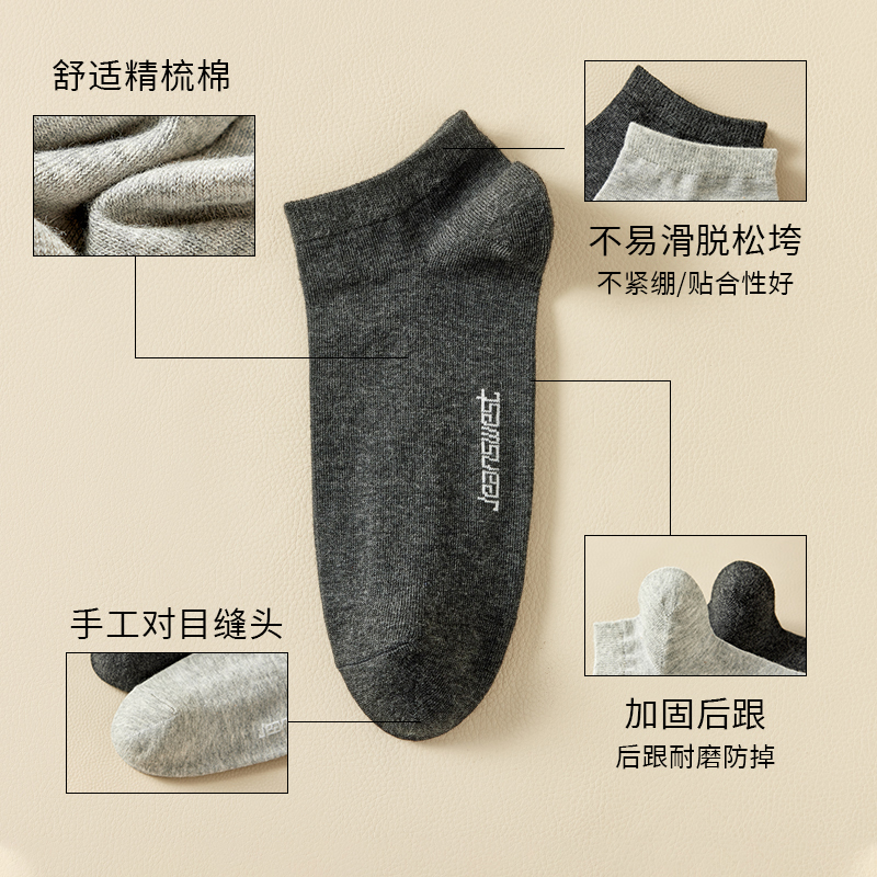 YM【5双装】真维斯男款纯棉船袜 男生休闲浅口隐形袜子潮流短筒袜