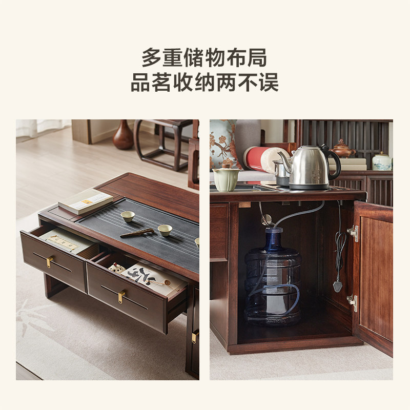 全友家居新中式茶几泡茶一体客厅家用2025新款实木框架多功能茶台