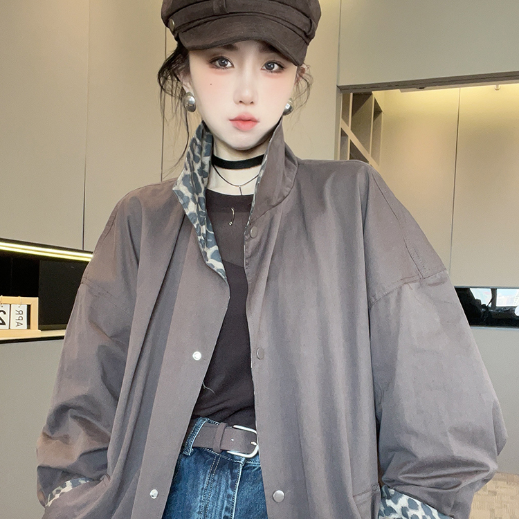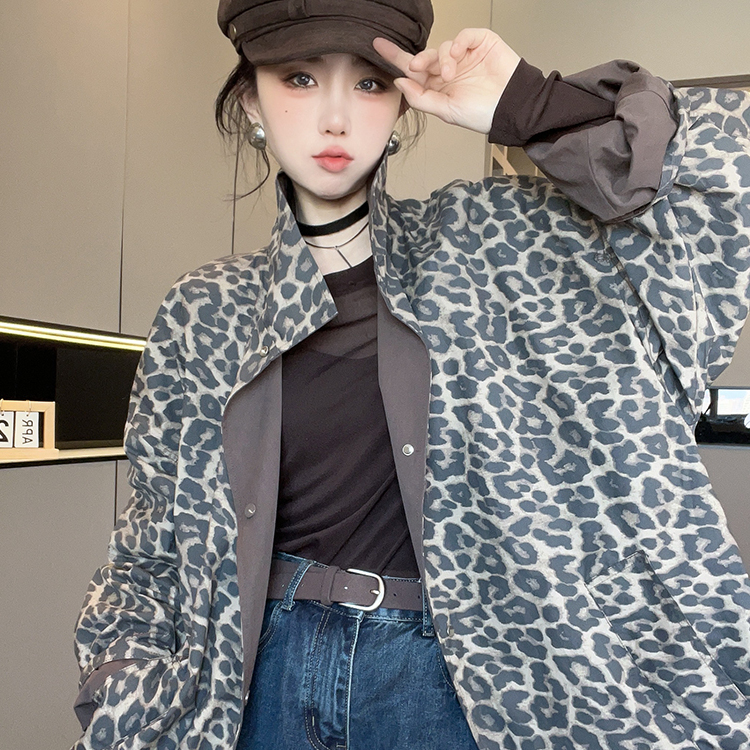 两面穿豹纹风衣女2025秋季新款欧洲站宽松百搭中长款外套长袖上衣