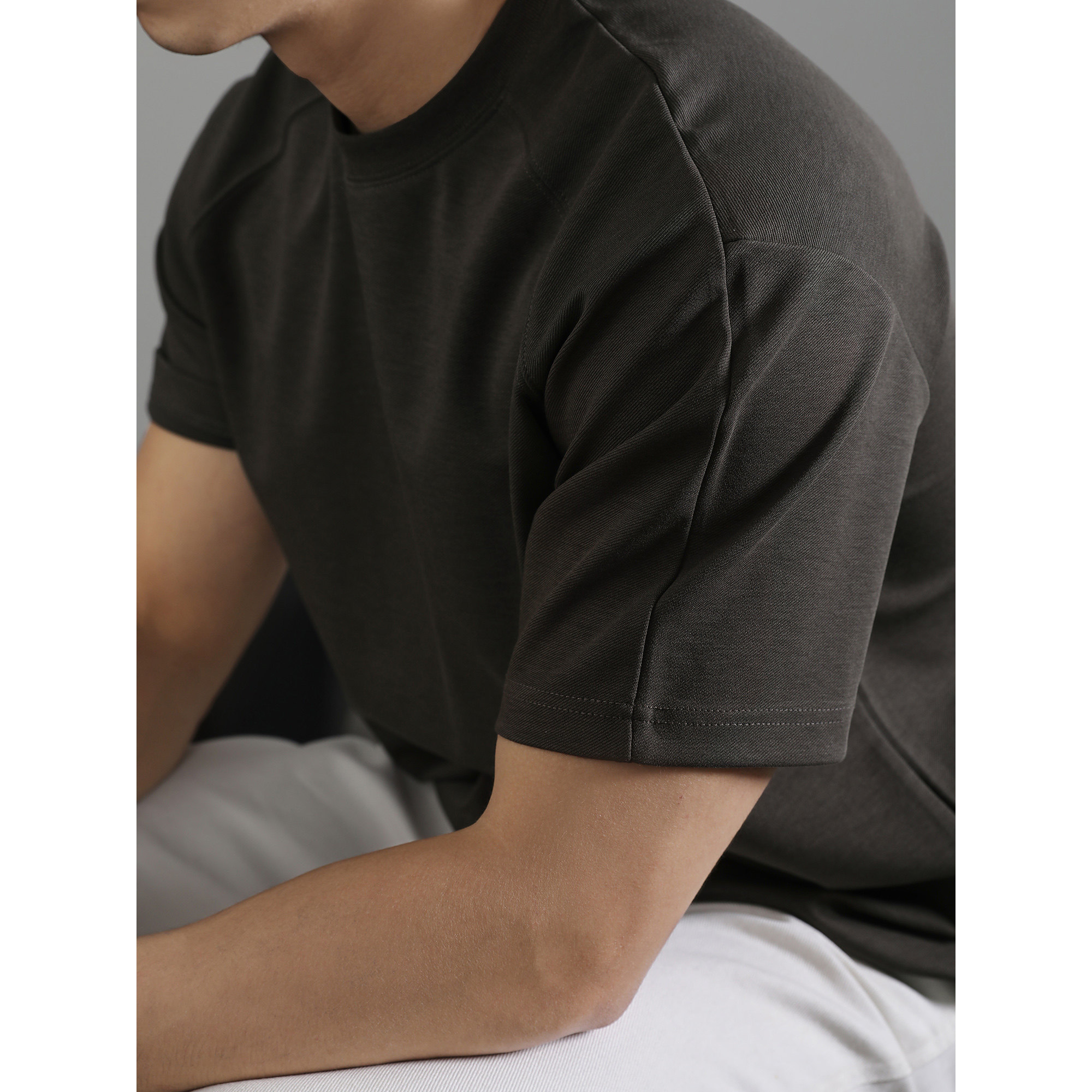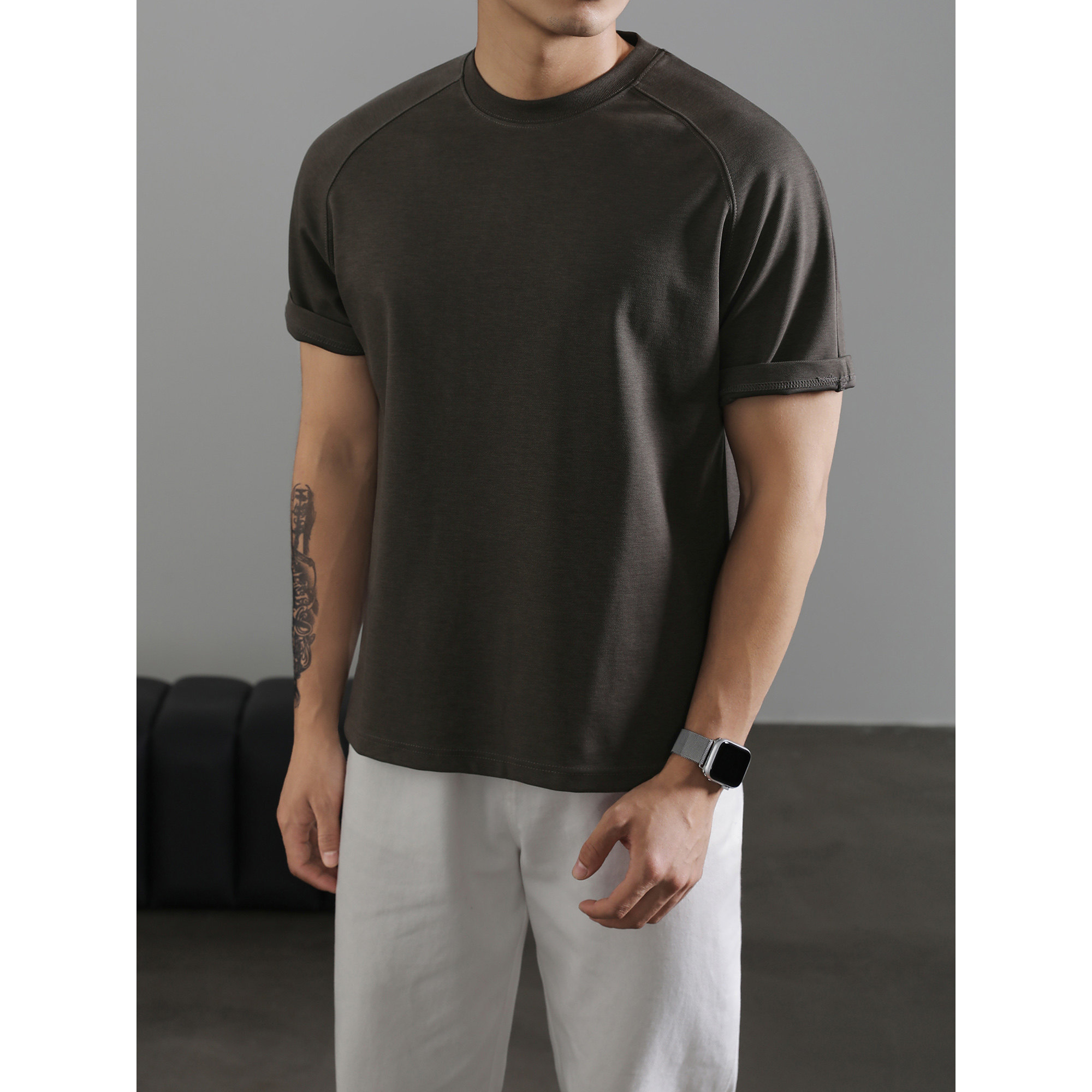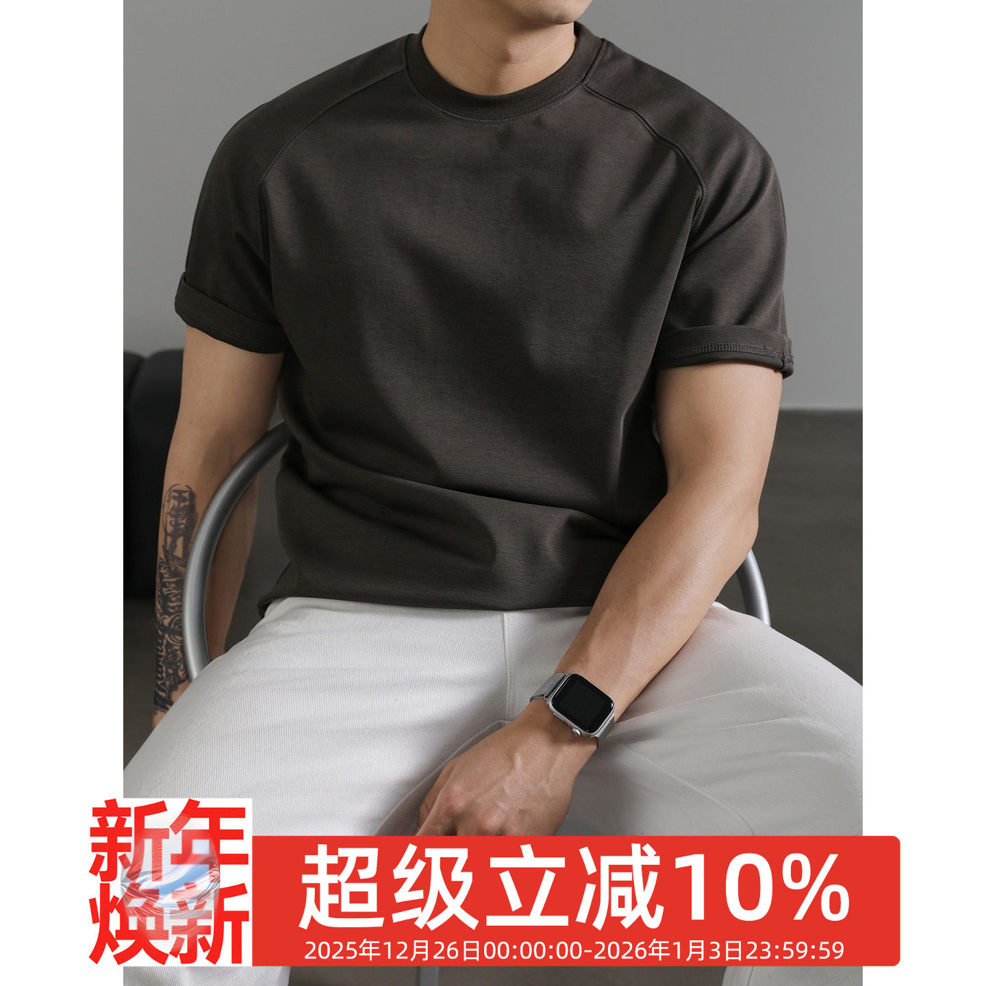 LUUD 深灰色圆领通勤短袖T恤男士休闲打底衫潮流气质感体恤衫上衣