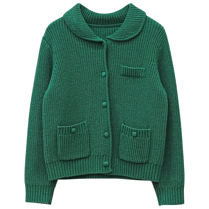 彩色复古羊毛翻领毛衣针织开衫女