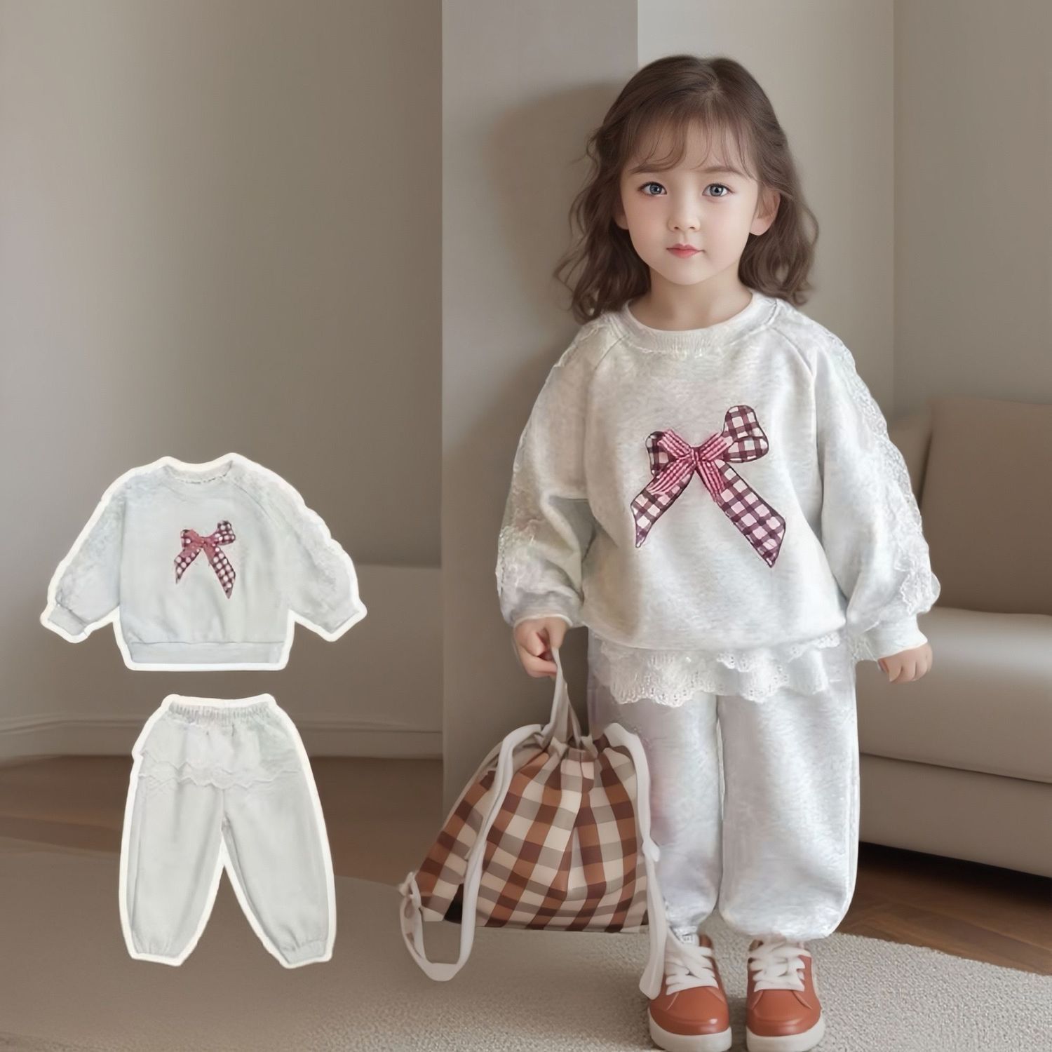 新款女童蝴蝶结套装春秋儿童花边卫衣宝宝休闲中小童两件套P328