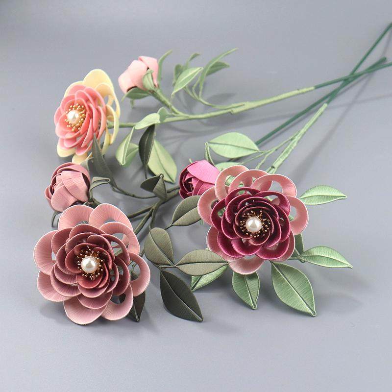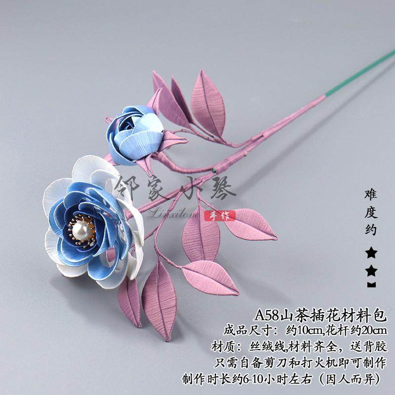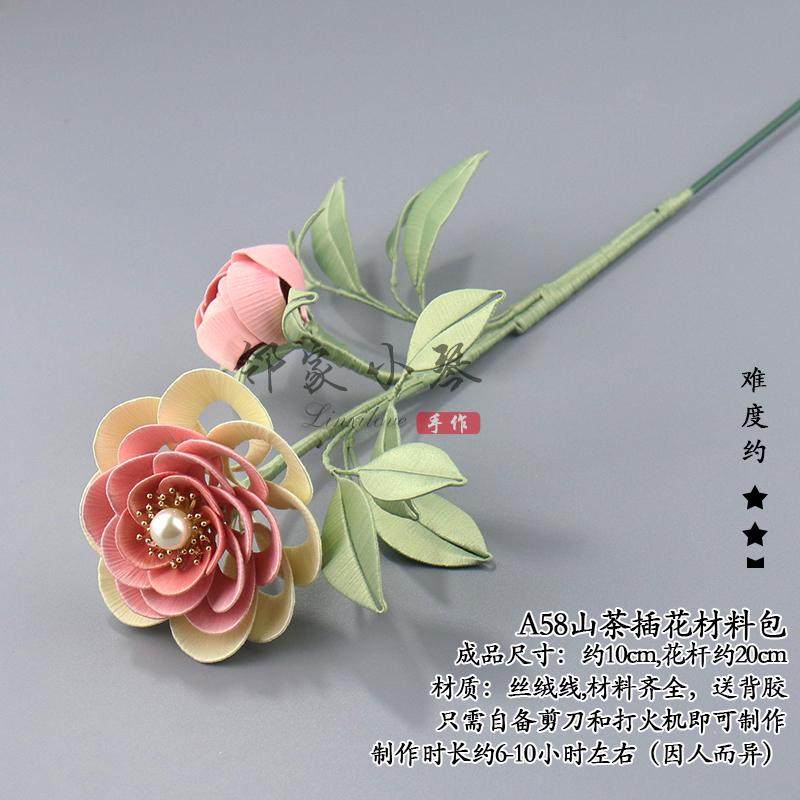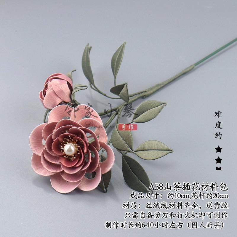 手工diy仿真山茶玫瑰插花手作用缠花材料包家居配饰摆件古风饰品