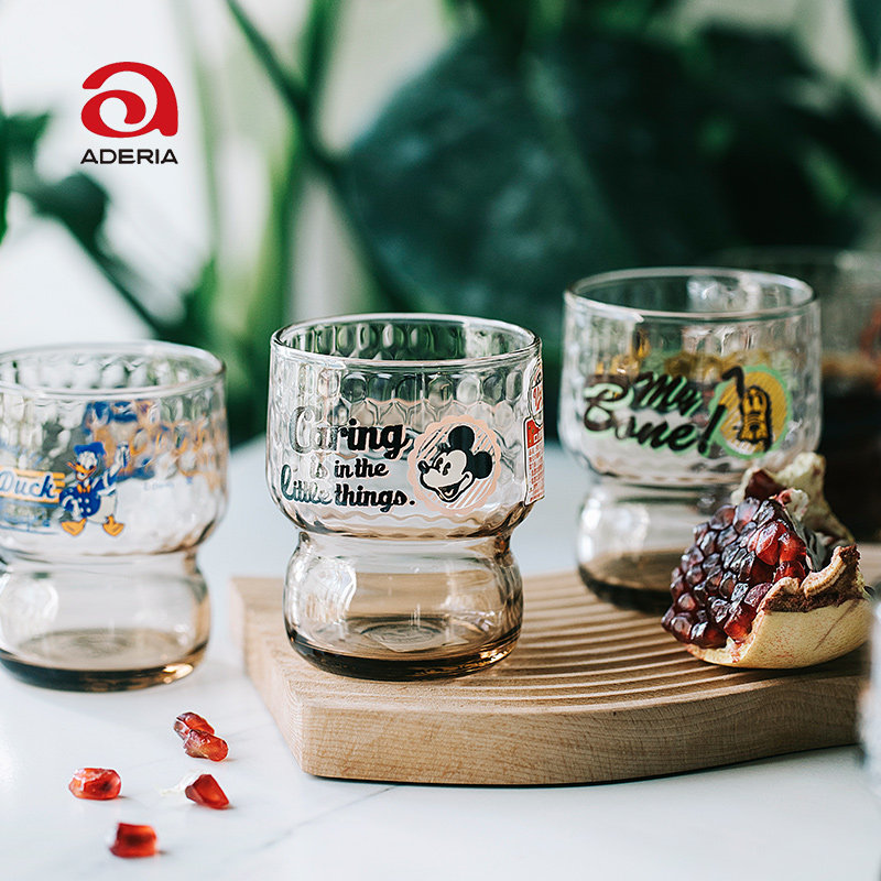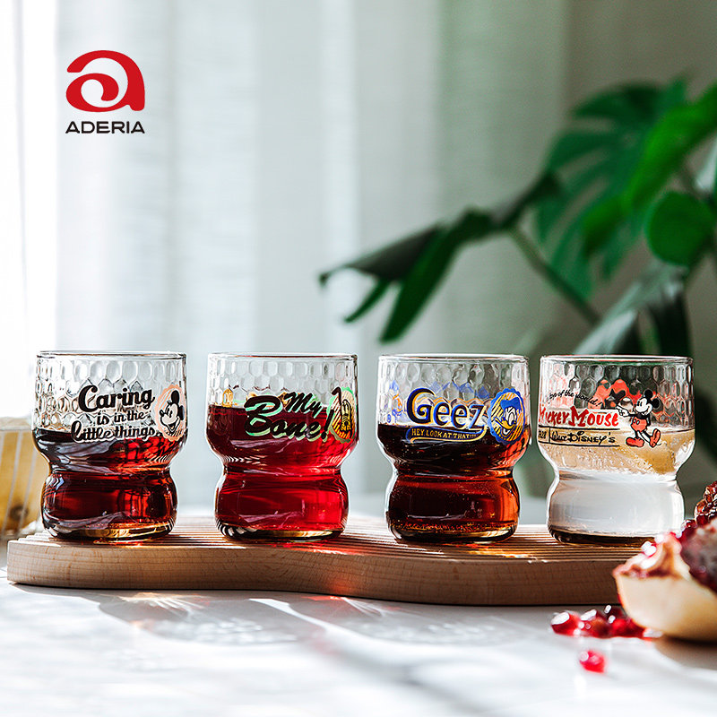 日本进口Aderia石冢硝子玻璃杯子迪士尼卡通奶昔果汁甜品水杯饮料