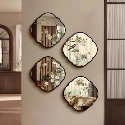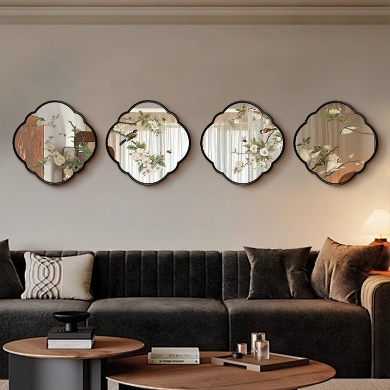 法式客厅镜面装饰画2024新款沙发背景墙复古壁画花鸟玄关镜子挂画