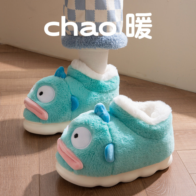 小丑鱼棉拖鞋女冬季包跟室内家居防滑情侣可爱丑萌加绒毛毛棉拖鞋
