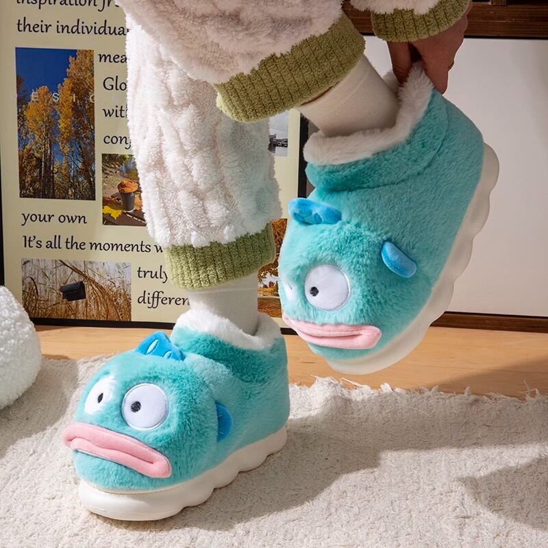 左福丑萌可爱情侣丑鱼棉拖鞋