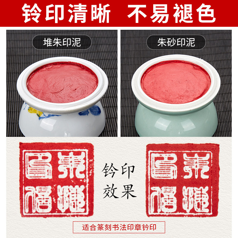 六品堂画者印泥堆朱朱砂朱膘印泥手账书画彩色印泥书法篆刻印泥印章套装便携印台印泥盒蓖麻油文房四宝陶瓷盒
