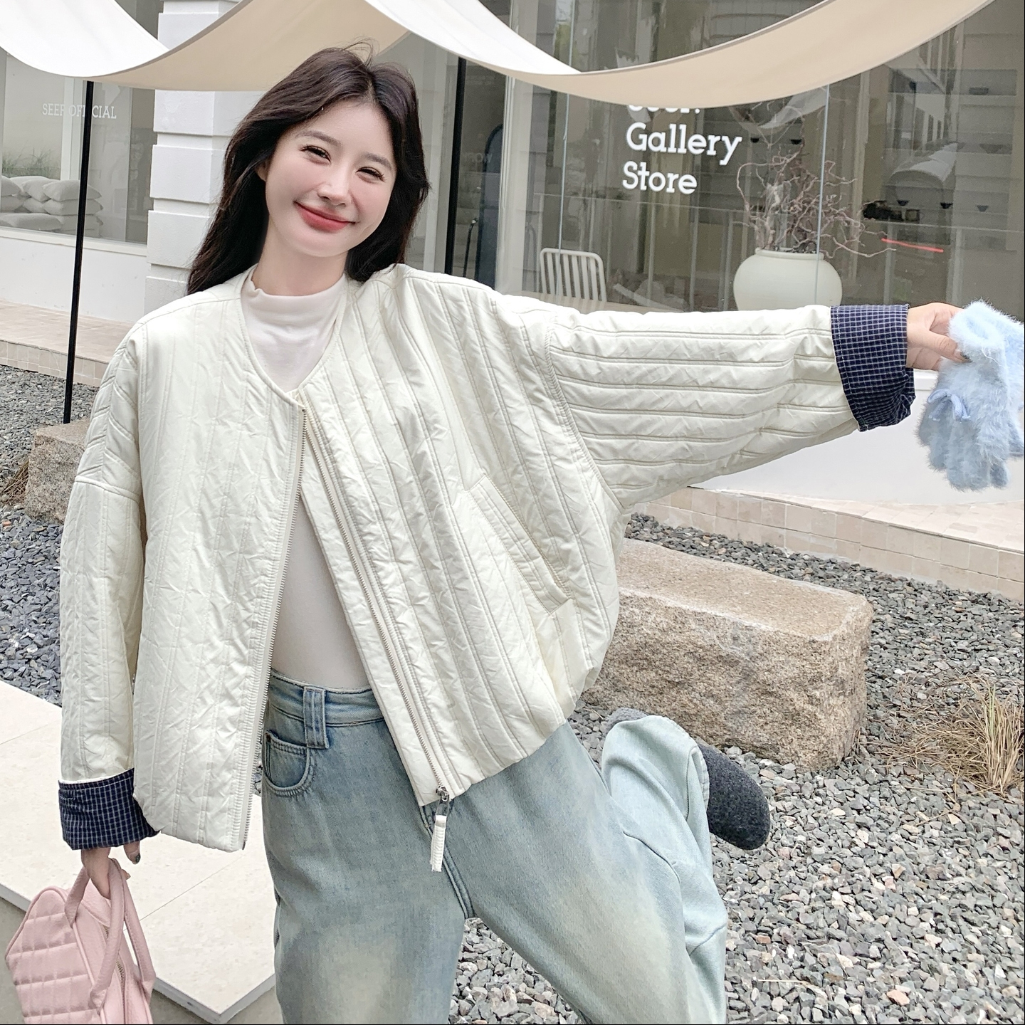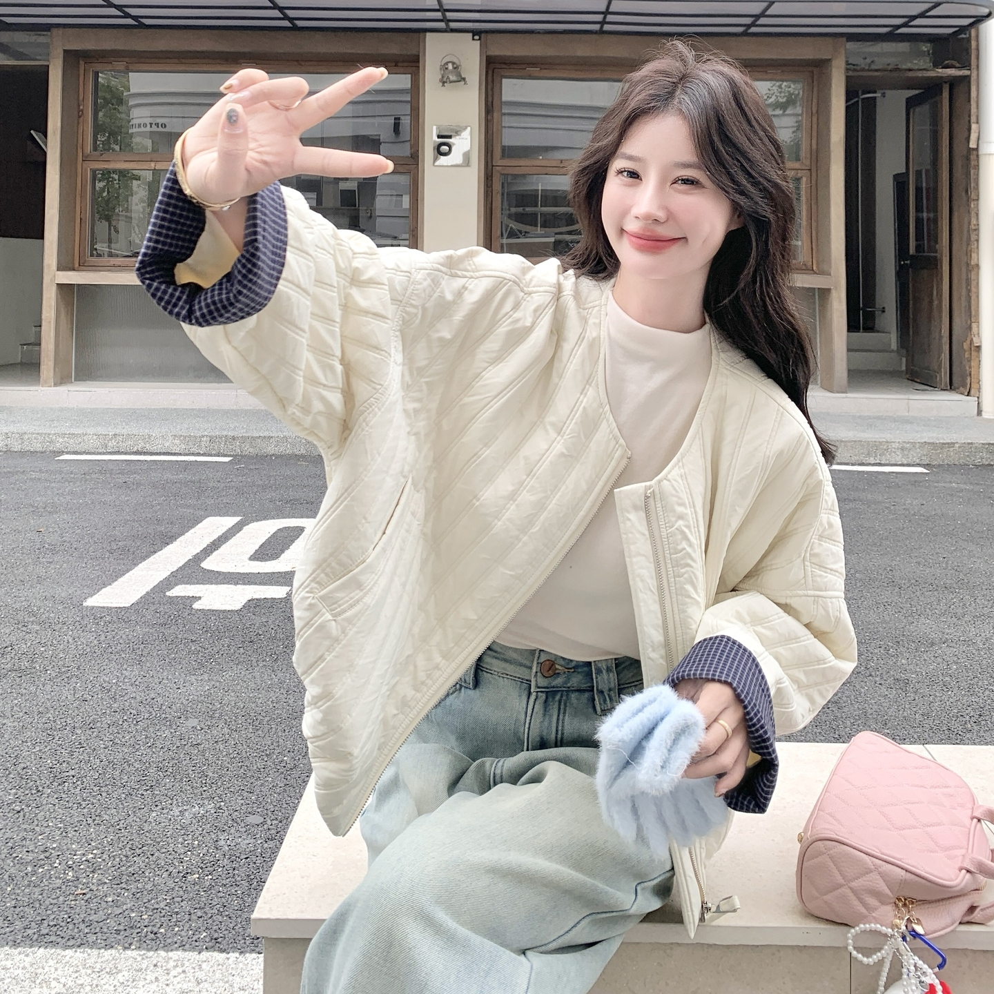 超火看白色圆领薄款棉衣女2025新款秋冬韩版宽松小个子棉衣短款
