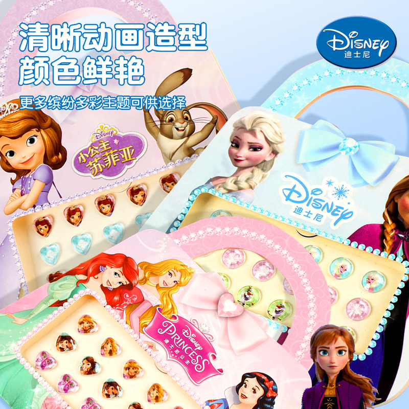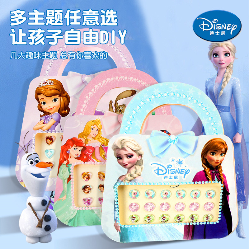 迪士尼耳钉贴纸儿童女孩子冰雪奇缘卡通艾莎公主3d立体钻石粘贴画