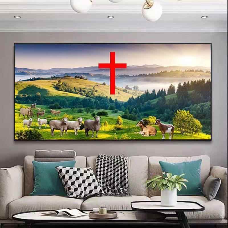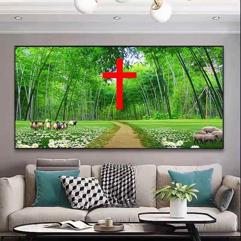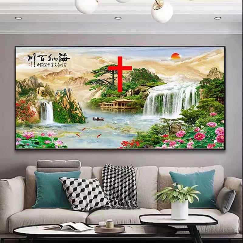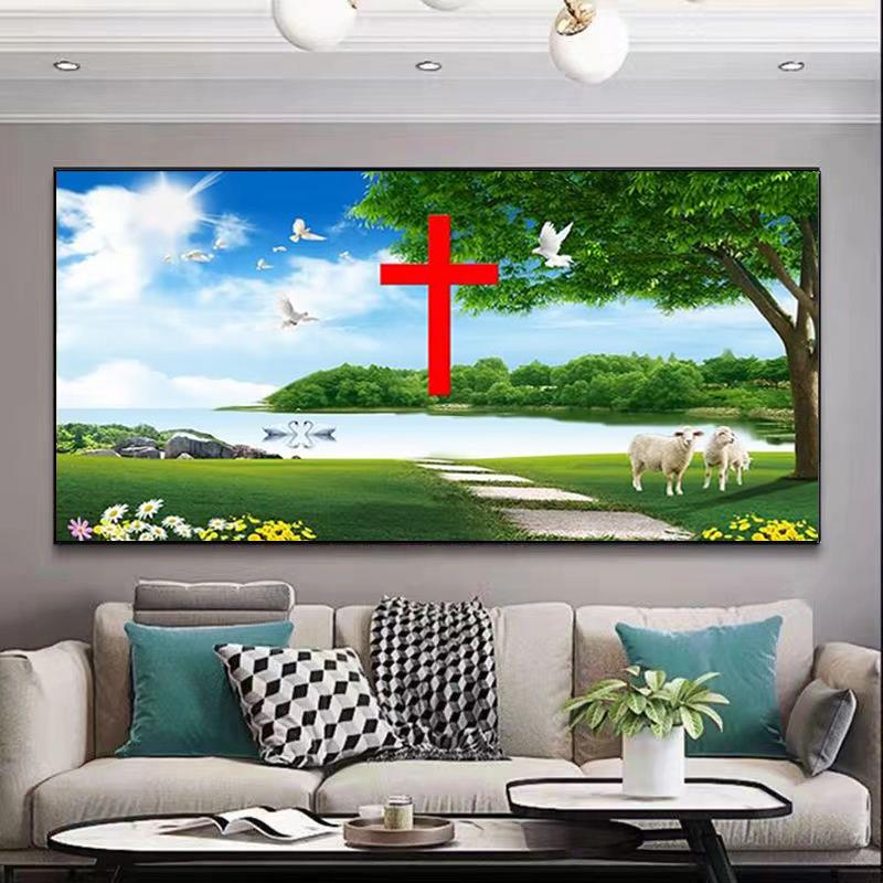 现代简约农村中堂十字架装饰画客厅沙发背景墙挂画晶瓷铝合金外框