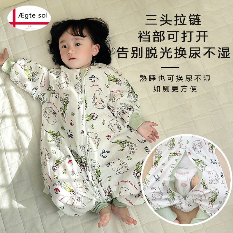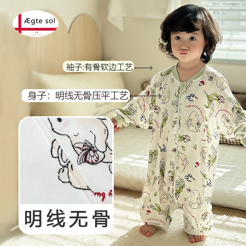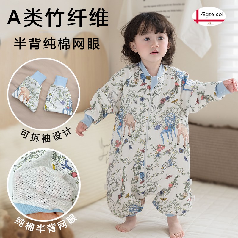 婴儿童竹纤维棉分腿睡袋衣宝宝春夏季薄款防踢被可拆袖透气空调服