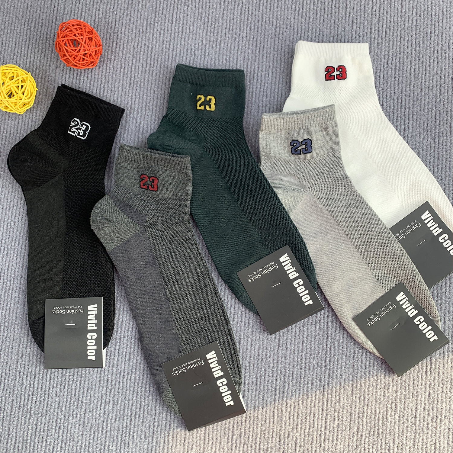 新款数字23短筒袜子男士春夏棉