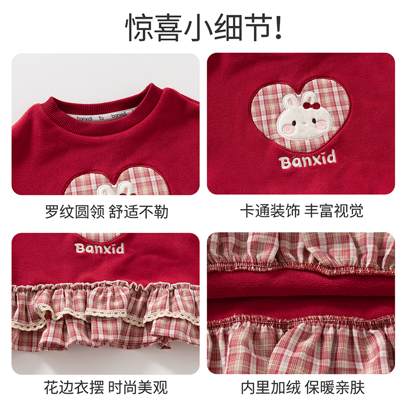 班喜迪女童卫衣秋冬款2025新款洋气宝宝加绒上衣冬装儿童公主衣服