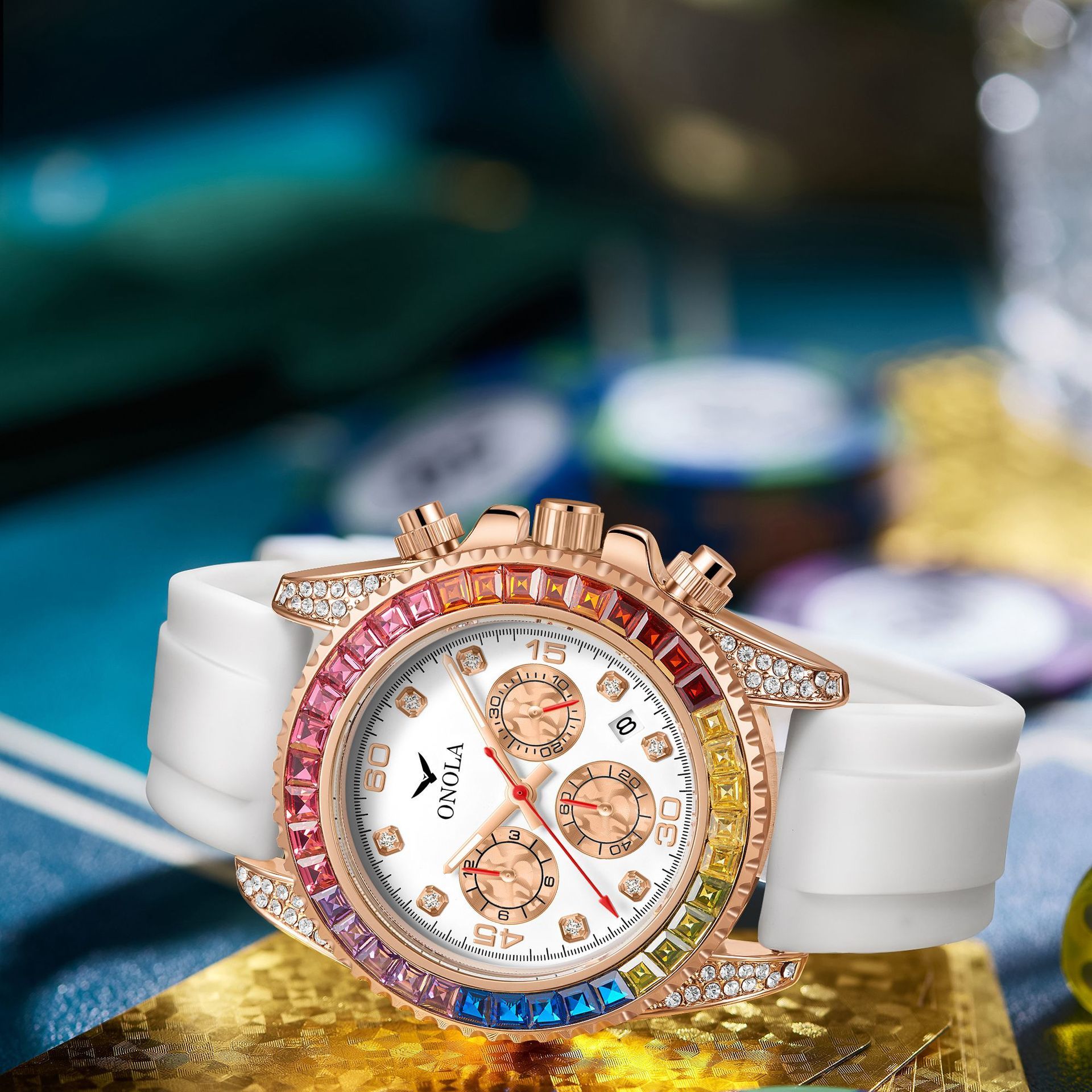 石英商务金表ONOLA/奥骆纳防水硅胶带彩虹迪手表男士跨境新款表