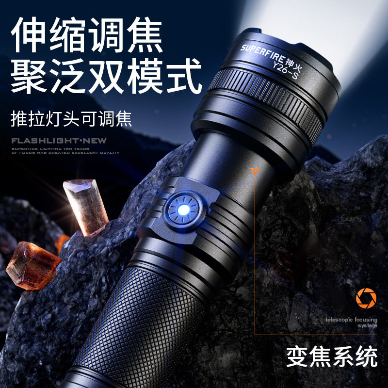 神火Y26-S白黄光变焦超强光手电筒26650充电超亮远射户外超长续航