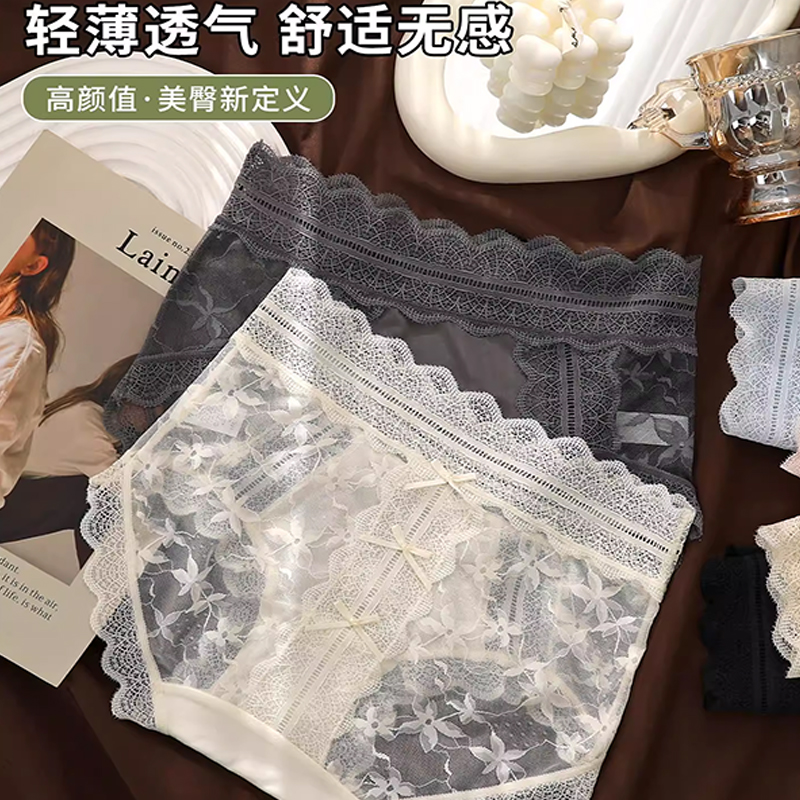 无痕蕾丝内裤女士纯棉7A抗菌裆夏薄款网纱2025新款性感提臀短裤