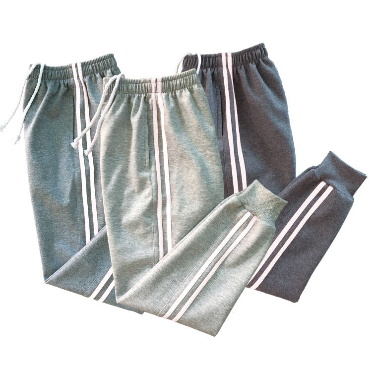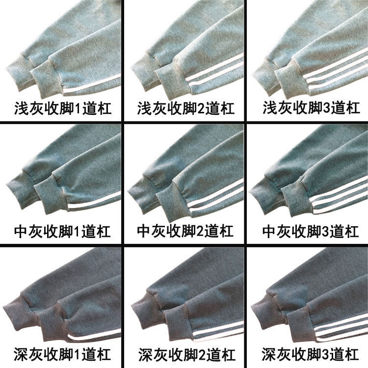 纯棉灰色裤子白色边条杠中小学生裤男女儿童收脚束腿运动长裤春秋