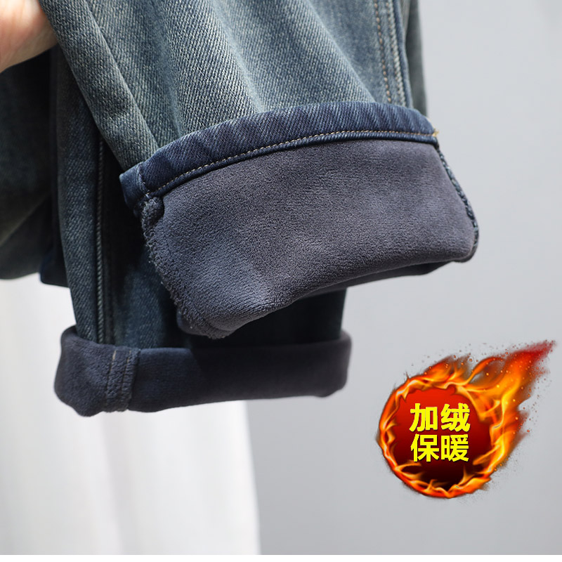 冬季新款加绒加厚牛仔裤女哈伦裤