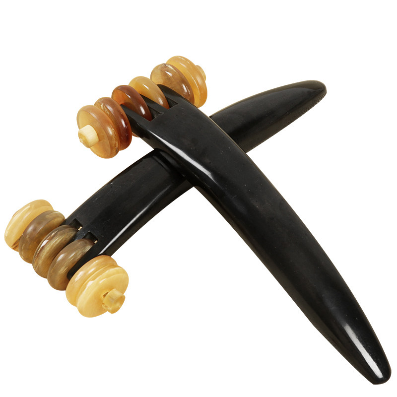 元奥纯牛角点穴棒滚轮式按摩刮痧