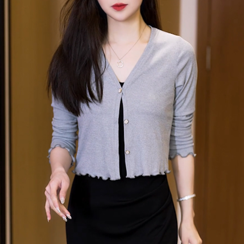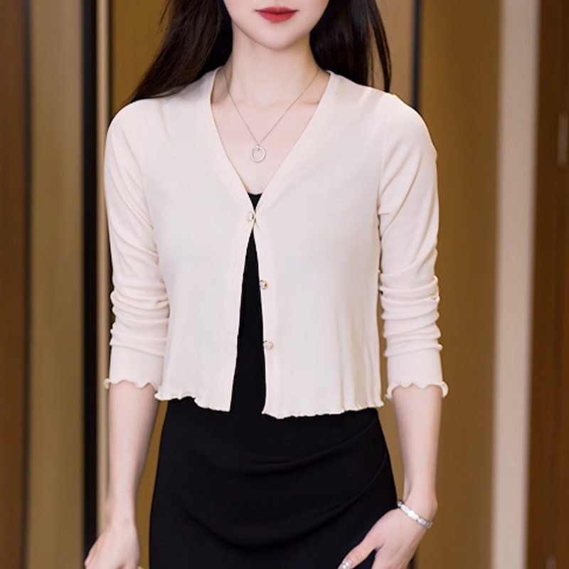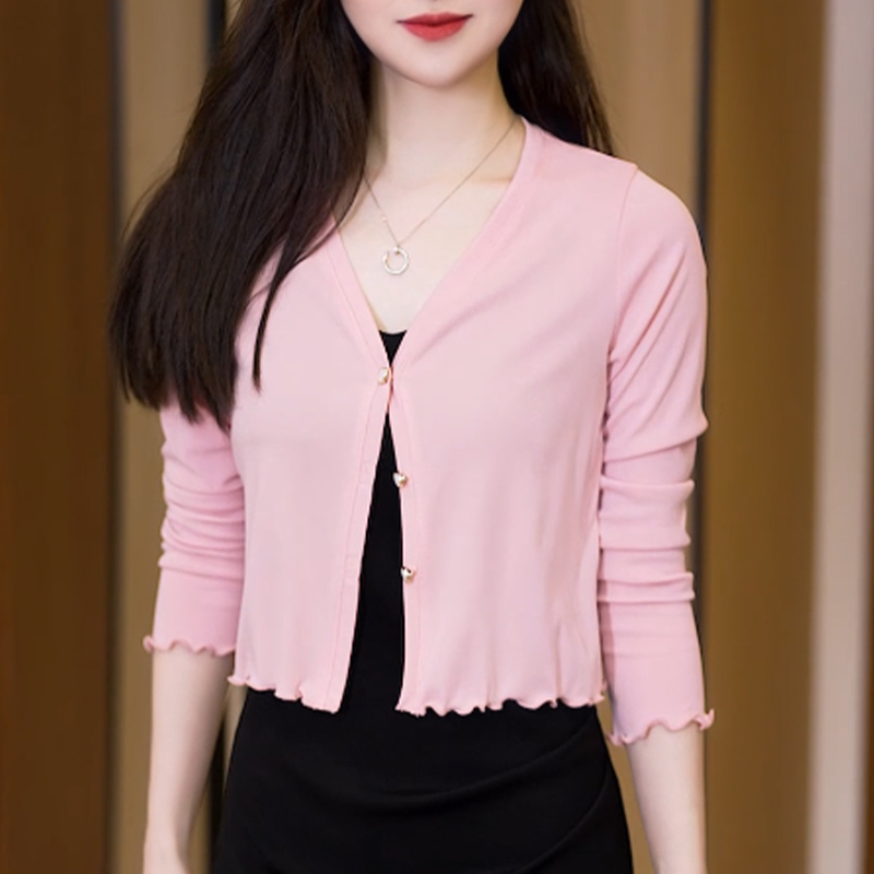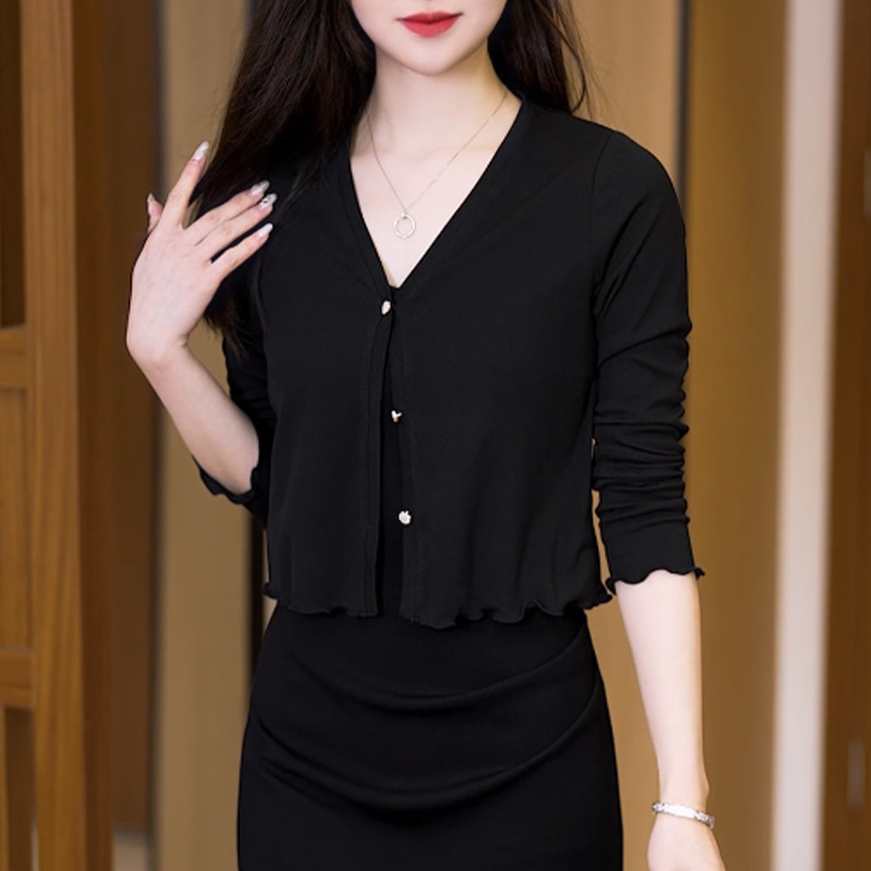 夏季新款木耳边针织长袖开衫吊带裙外搭小披肩短款外套上衣空调衫