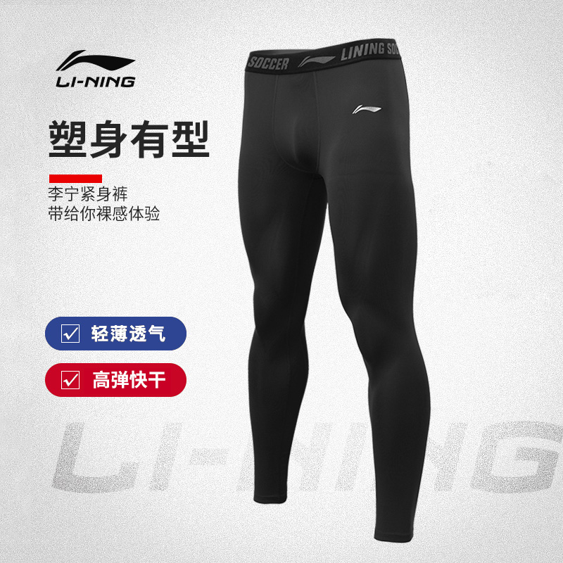 李宁紧身长裤篮球跑步瑜伽运动打底裤女压缩男高弹训练加绒健身裤