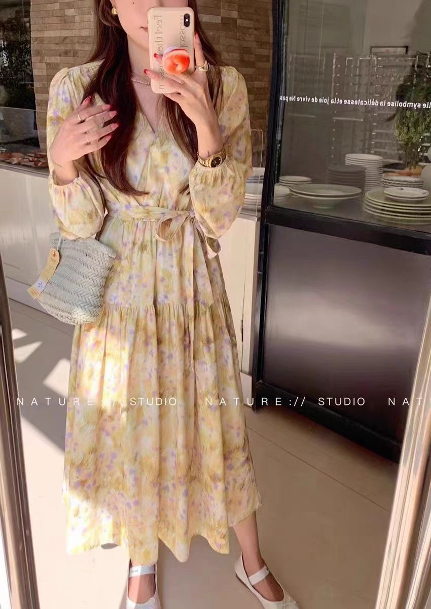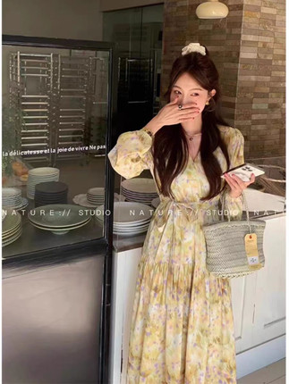 u m由米春款仙气飘飘雪纺连衣裙女法式浪漫碎花绝美仙女裙
