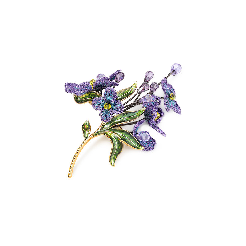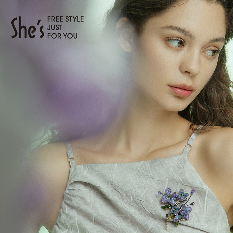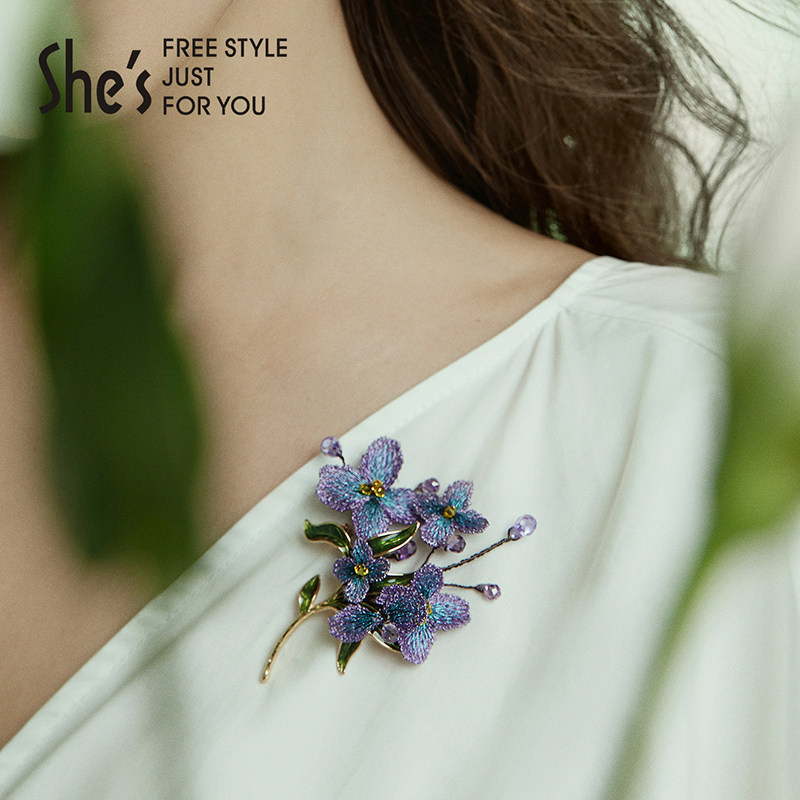 shes茜子勿忘草手工金线刺绣花朵胸针高档精致时尚胸花别针配饰