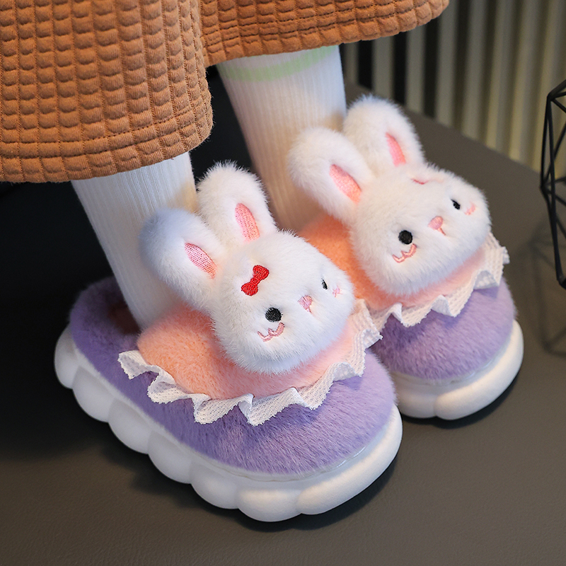 日本进口儿童棉拖鞋2025新款女童兔子冬季居家用厚底室内防滑保暖