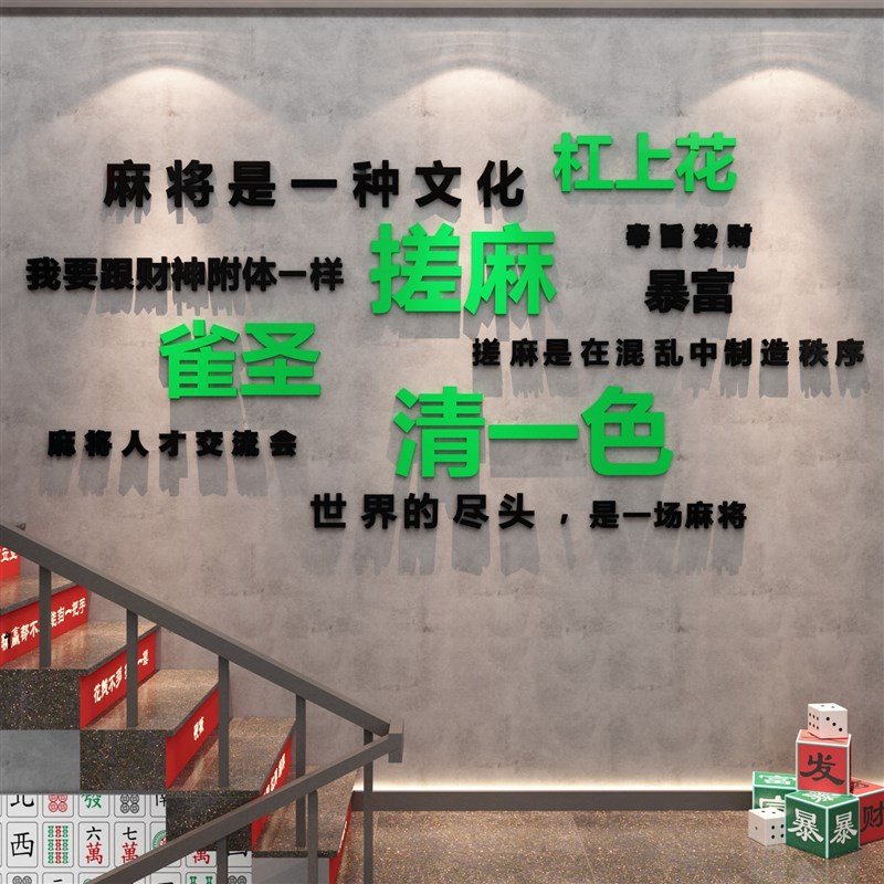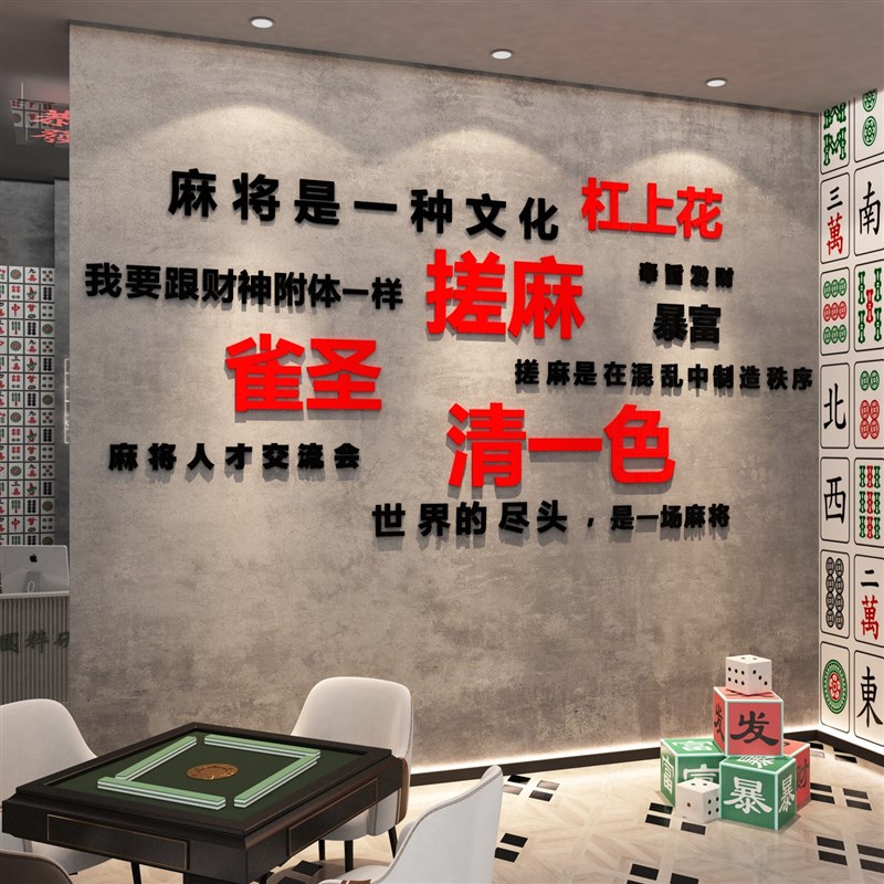 极速网红棋牌室装饰画麻将馆背景文化墙面布置麻雀房间.用品标语