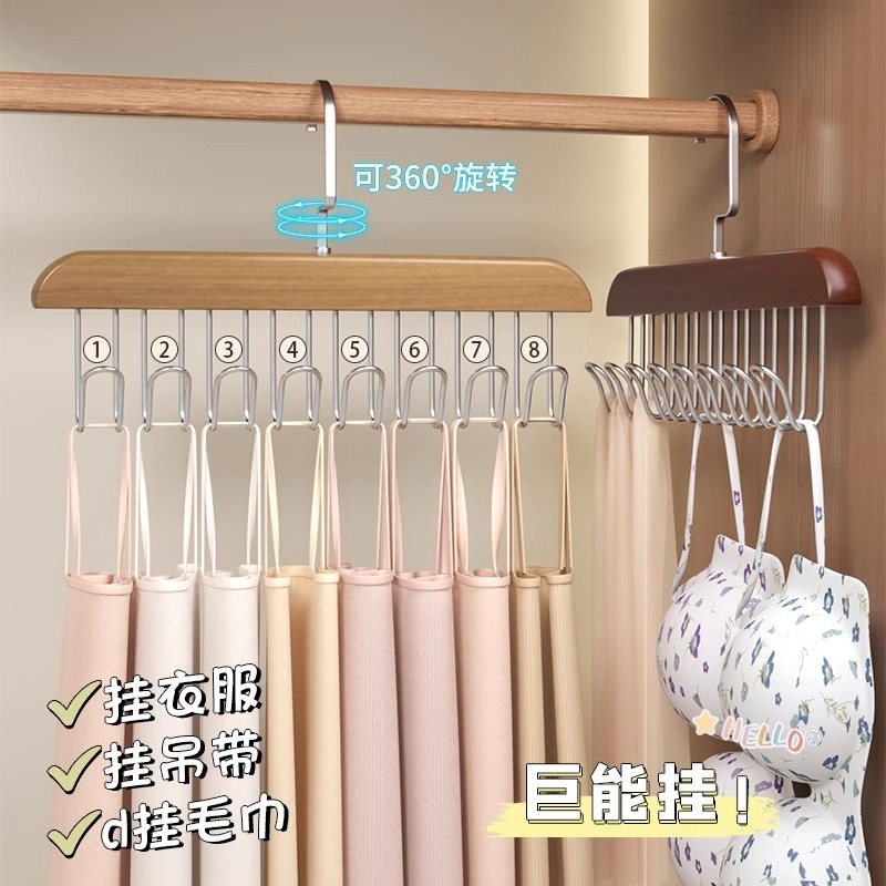 木质吊带衣架家用多功能挂钩衣架内衣背心八钩衣架实木波浪晾衣架