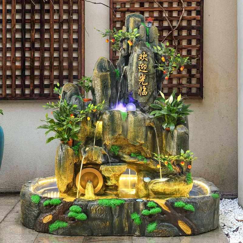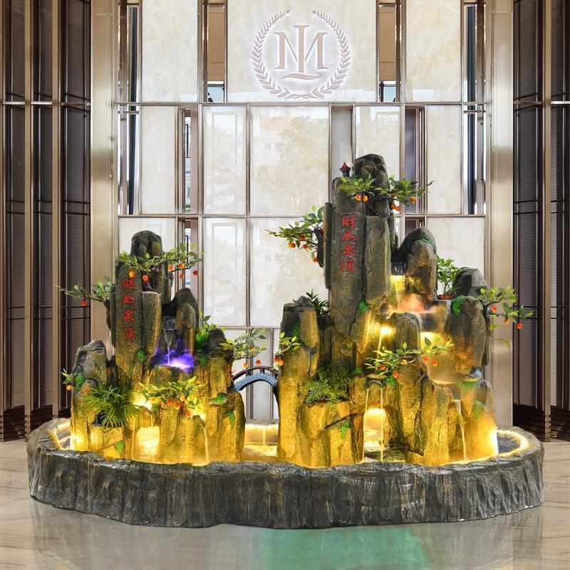 喷泉流水办公假山大型客厅摆件鱼池落地生财室内招财盆景水景高山
