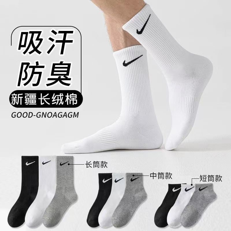 吸汗袜子防臭中长筒袜脚气纯棉袜运动男女百搭青少年跑步抗菌短袜