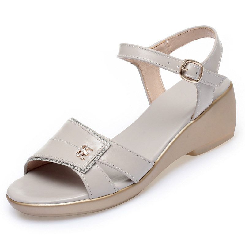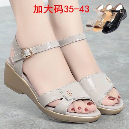 红蜻蜓金典凉鞋女夏季2022新款女式软底鞋坡跟百搭妈妈鞋奶奶鞋子