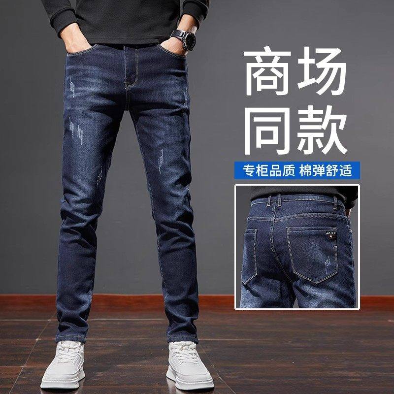 Yishion以纯官方时尚正品男士牛仔裤秋季新款修身直筒小脚裤休闲